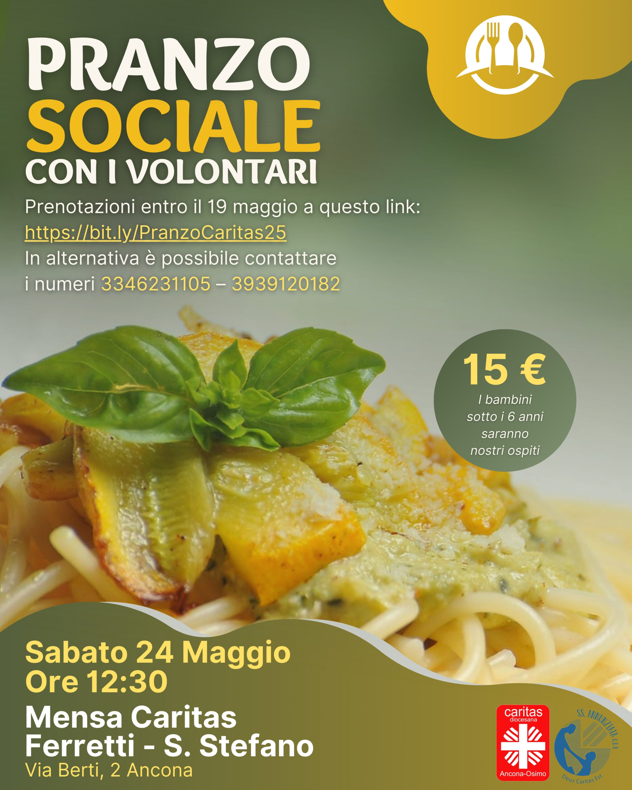 Per prenotarvi vi invitiamo a compilare il form che trovate a questo link https://bit.ly/PranzoCaritas25