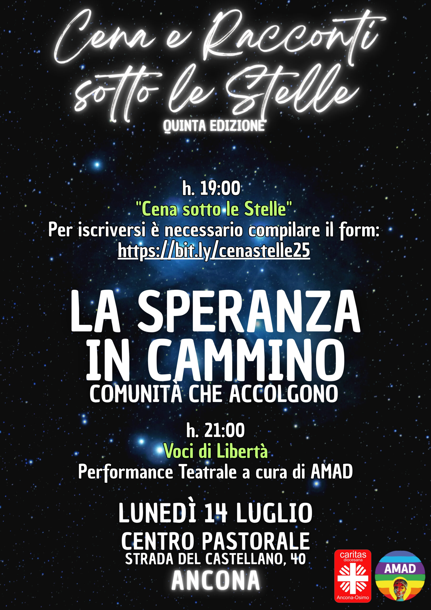 Il secondo incontro: “La speranza in Cammino – Comunità che accolgono” si svolgerà lunedì 14 luglio alle ore 21:00 ad Ancona, presso il Centro Pastorale diocesano (strada del Castellano, 40).